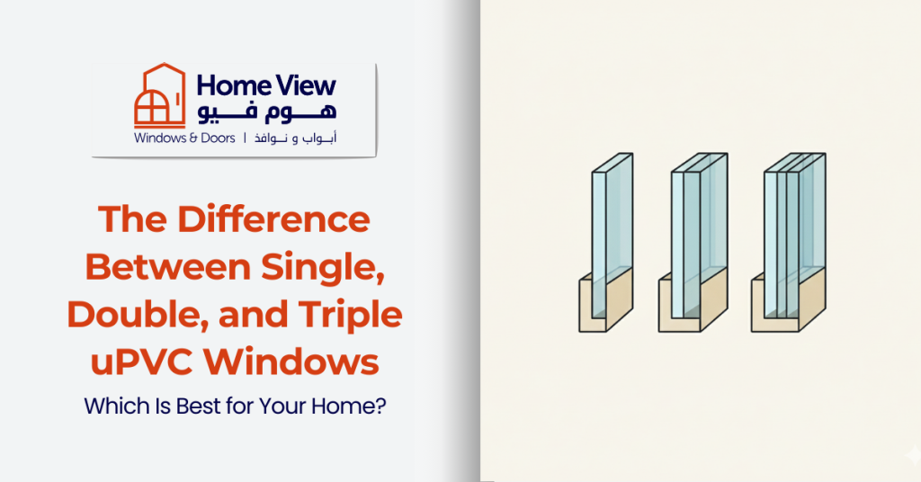 As the number of glass layers increases, the level of thermal and acoustic insulation rises, and the thickness of the sealed glass unit doubles. In a hot climate like that of the Kingdom, we at Home View Company are keen to guide customers toward choosing the optimal type for their homes among single, double, and triple uPVC windows.